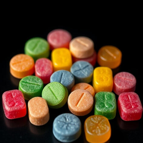 This is a very simple looking drug. Multicolored chewable tablets, that taste sour at first, but fades to sweet as it's chewed. The effect is very simple, the same as taking Molly. EVERYTHING feels good everything sounds good, every idea is a good idea, nothing bad can get to you. Upon ingesting, roll 1d4 to determine the number of hours the effect is active